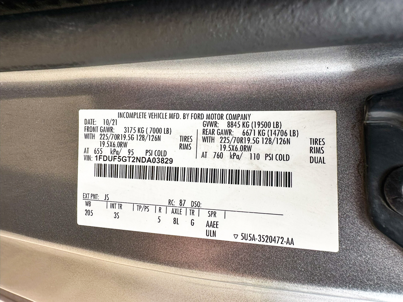 | VIN | 1FDUF5GT2NDA03829 |